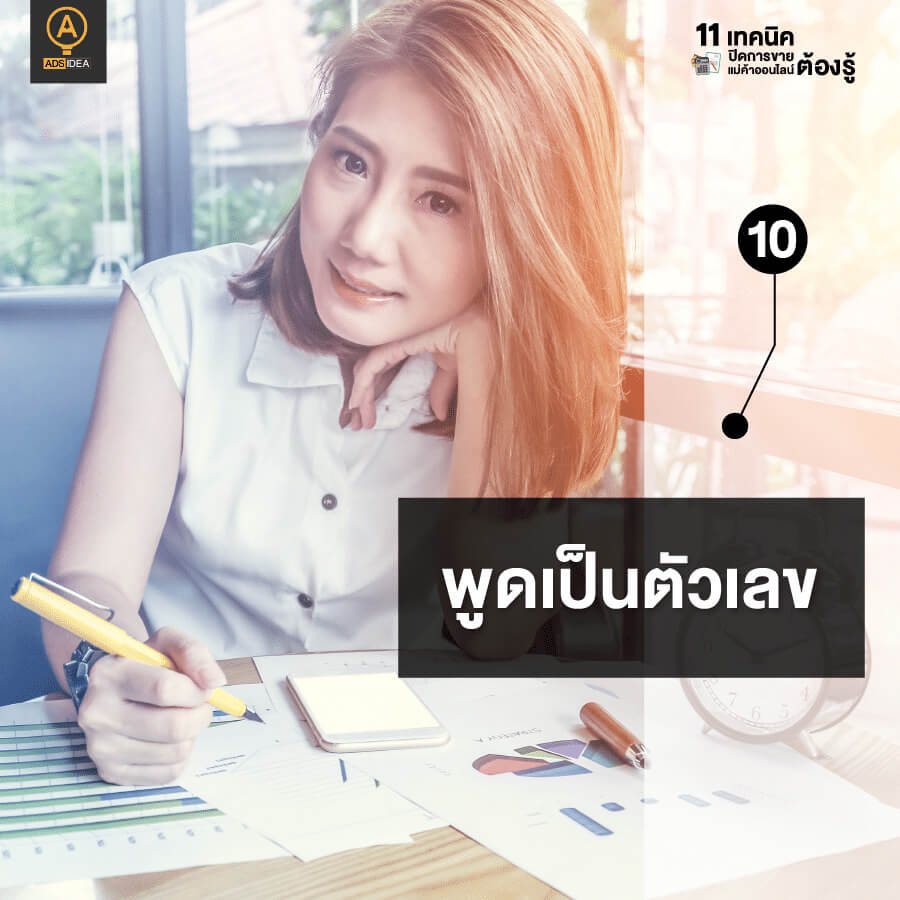 ลูกค้าชอบอะไรที่วัดผลได้ หากเราหยิบตัวเลขมาพูด หรืออ้างอิง จะทำให้การพูดเสนอขายของเราดูน่าเชื่อถือขึ้นมาอย่างมาก เช่น “จากผลการใช้อาหารเสริมลดน้ำหนักของลูกค้าเราส่วนใหญ่ จะมีนำหนักลดลง XX กก. ในระยะเวลา X เดือน” “หลังจากที่ลูกค้าเราได้นำระบบของเราไปใช้แล้วทำให้ยอดขายของเค้าเพิ่มขึ้น 10% ต่อเดือน”