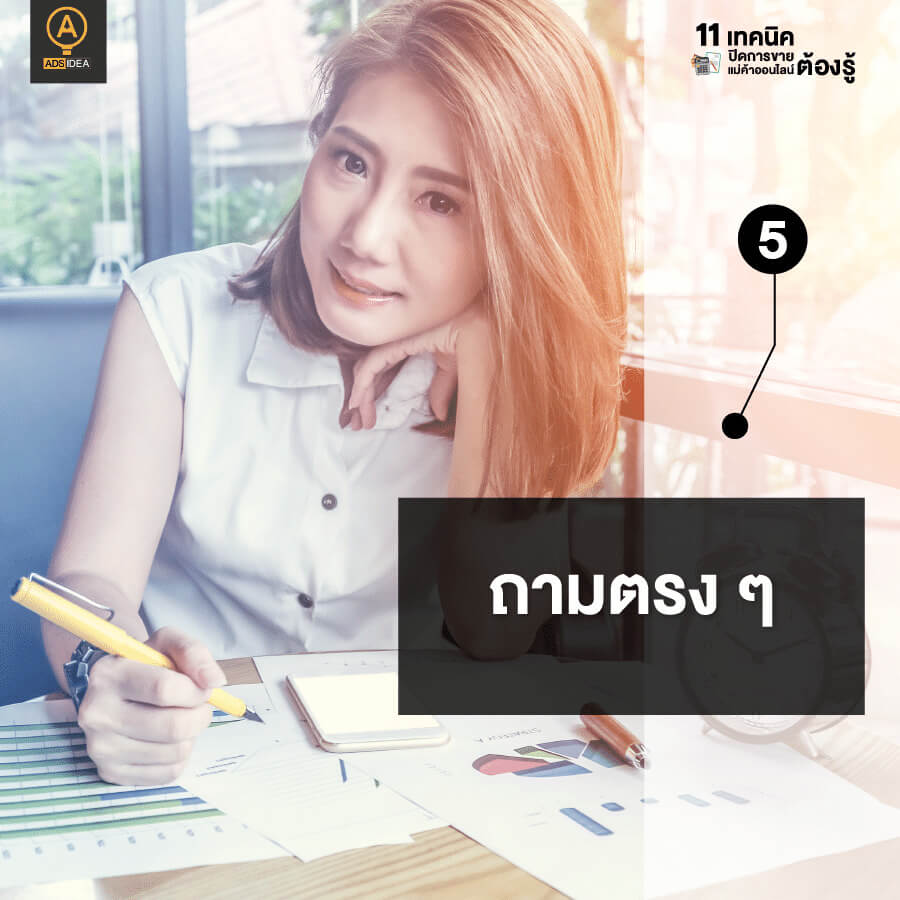 หลังจากที่เรานำเสนอลูกค้าไปแล้วมากมาย การเร่งรัดอีกอย่างนึงคือ “การถามคำสั่งซื้อ” เป็นคำถามเพื่อการปิดการขาย แบบสุภาพ เช่น “ลูกค้าจะรับบริการนี้เลยมั้ยคะ” “ลูกค้ารับเป็นสินค้าตัวนี้เลยใช่มั้ยคะ” …. แต่ไม่ควรใช้คำพูดเร่งรัดที่ไม่สุภาพเด็ดขาด เช่น “ตกลงว่าพี่จะซื้อมั้ย?” ห้ามเด็ดขาด
