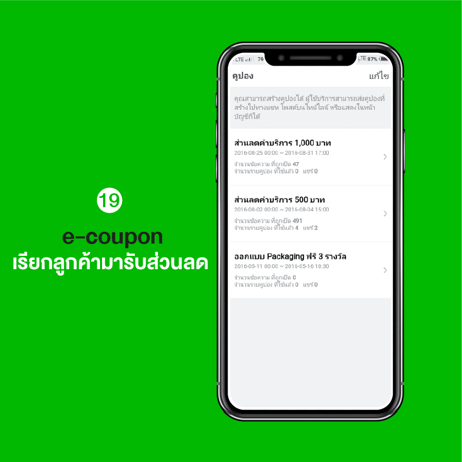 เรียกว่าเป็นไฮไลท์ของแอพฯ LINE@ เลยทีเดียว สามารถส่งข้อความ รูปภาพ คูปอง และโปรโมชั่น
