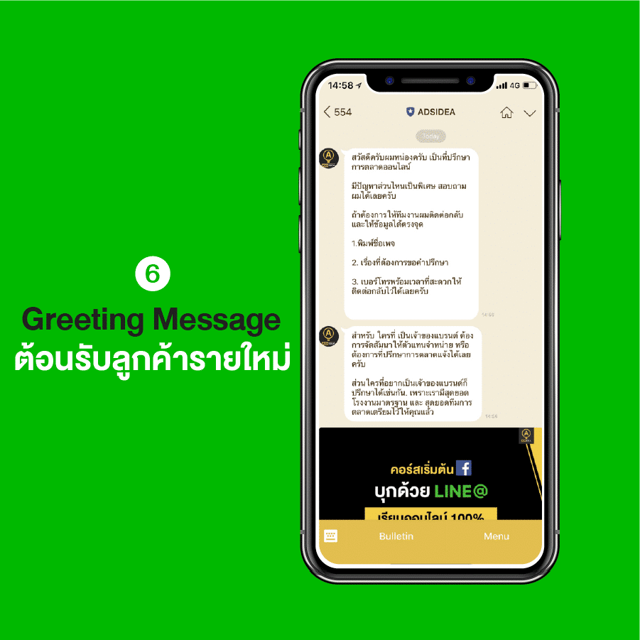 สามารถตั้ง Greeting Message ส่งข้อความตอบรับลูกค้าที่ follow ครั้งแรก แม้ในช่วงที่เรายุ่งๆไม่มีเ